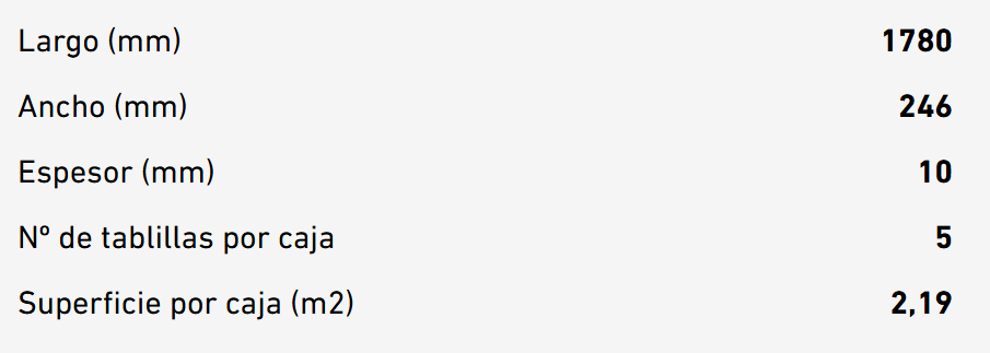 Unidades en el producto: Cantidad en cajas: Cada caja contiene 1.75 m²