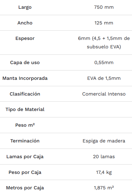 Suelo vinílico SPC de última generación que recupera el diseño tradicional en espiga con las máximas prestaciones. Su núcleo rígido de stone plastic composite (4,5 mm) garantiza una estabilidad total y resistencia al agua, mientras que la manta EVA de 1,5 mm integrada actúa como un excelente aislante acústico y térmico, proporcionando un confort excepcional bajo los pies. Clasificado para uso comercial intenso, cuenta con una capa de uso de 0,55 mm que asegura su durabilidad.
