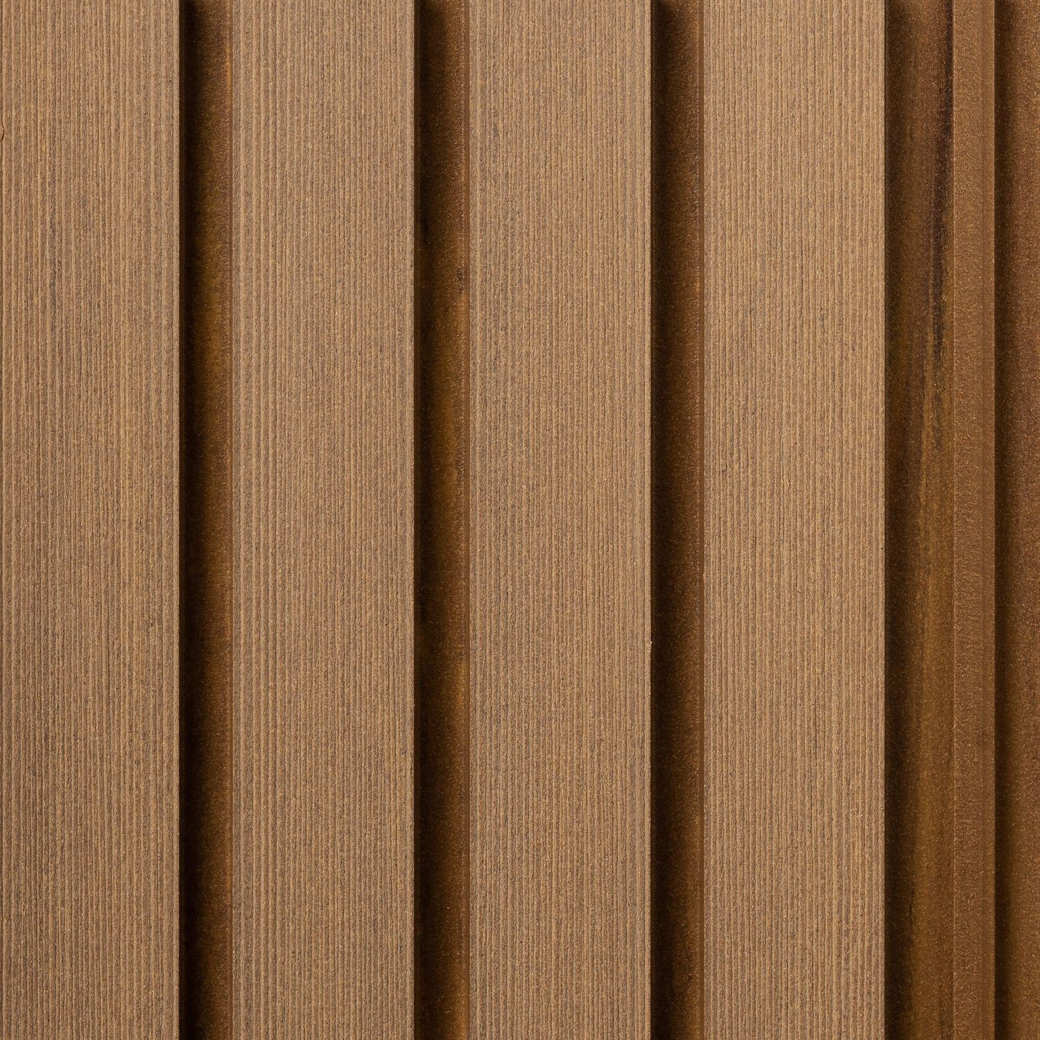 - Material: Los paneles están hechos con un compuesto Eco-fiber WPC (Wood Plastic Composite) que combina policloruro de vinilo, cáscara de arroz y piedra caliza, conteniendo un 33% de material reciclado. Este material es ecológico y sostenible, utilizando 60% de energía renovable en su producción.