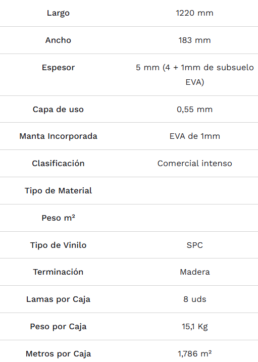 Descubre la combinación perfecta de resistencia y confort con el suelo vinílico, es 100% resistente a la humedad y no sufre alteraciones dimensionales, garantizando una belleza impecable en cualquier estancia. Su capa de uso de 0.55mm y clasificación para uso comercial intenso lo hacen ideal tanto para hogares como para locales de alta concurrencia. Además, incorpora una lámina de EVA de 1mm integrada que proporciona un excepcional aislamiento acústico y confort al pisar. Fácil instalación cliqueable y disponible en una gama de 6 colores con terminación madera. ¡Renueva tus espacios con estilo y durabilidad!