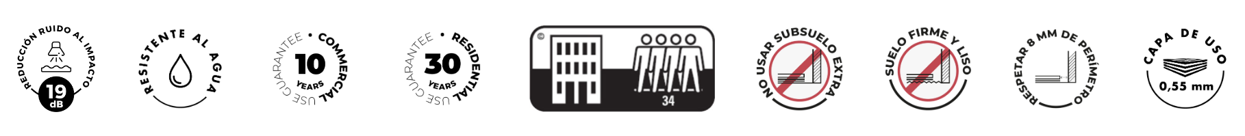 100 % resistente a la humedad e ideal para zonas de alto tránsito comercial.
